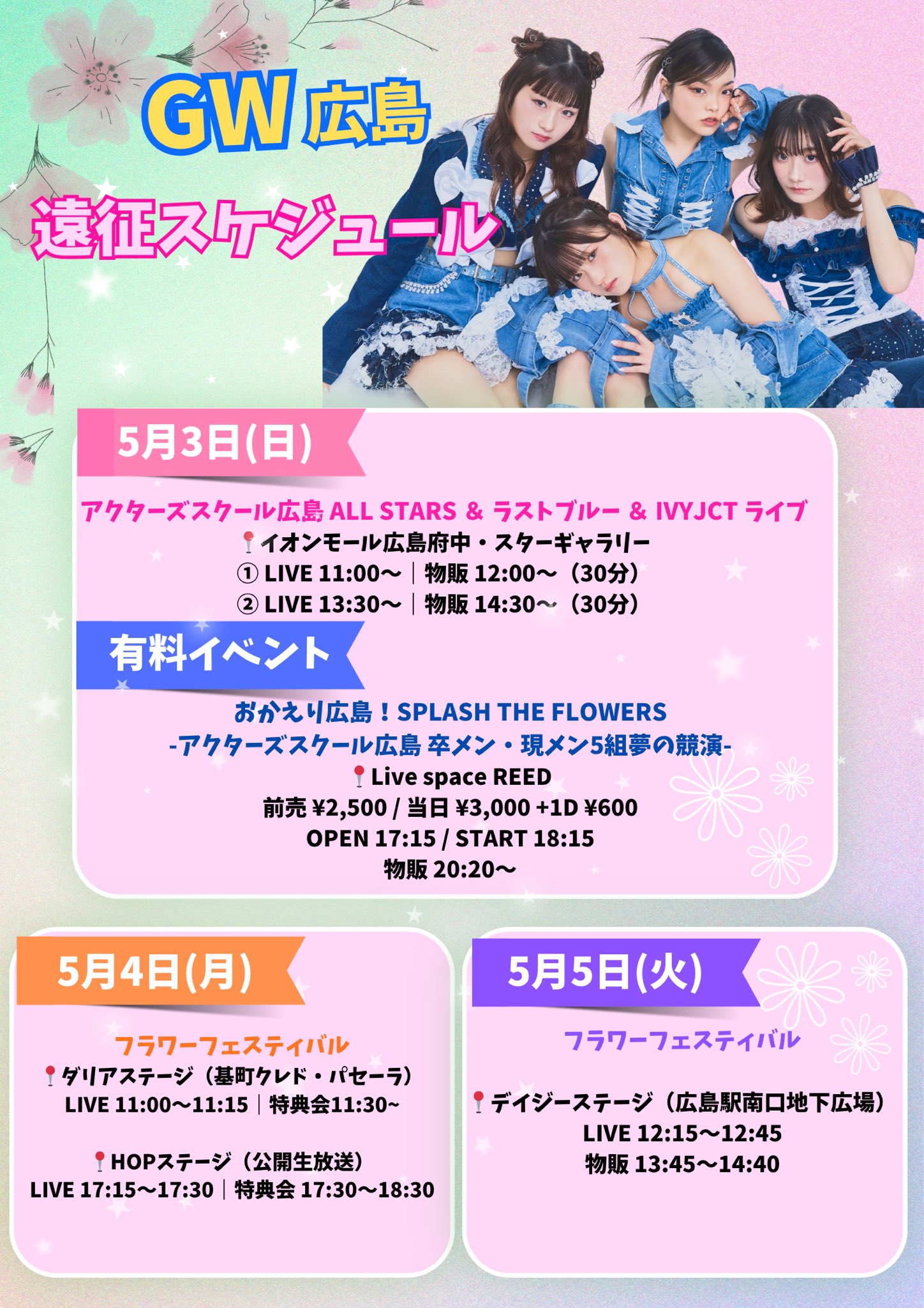 📍デイジーステージ(広島駅南口地下広場)LIVE 12:15〜12:45物販 13:45〜14:40
